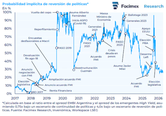 Sin embargo, advierte que el corto plazo sigue condicionado. “Claramente, con 2027, que es un año electoral, perforar estos números de riesgo país con estas encuestas de imagen va a ser difícil”, indica.