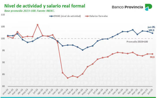 En ese sentido, enumeró: “La actividad industrial cayó 1,4% (FIEL); la construcción retrocedió 0,4% (Índice Construya), la producción automotriz se desplomó 5,3% (ADEFA) y la molienda de soja cayó 7,2%”. Solo algunos rubros mostraron mejoras, como “los despachos de cemento (+2%), la producción de petróleo (+2,7%) y la de acero (+0,9%)”, planteó.